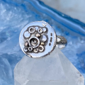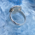 The front ‘stone’ is held by a 3mm wide D shaped piece of silver which sits comfortably on the hand.