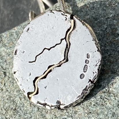 Strata Pendants are formed by forging recycled Silver and intersecting it with elements of 9ct Gold.