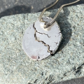 This piece weighs 9 grams, is 23mm and is suspended from an 18 inch Silver snake chain.